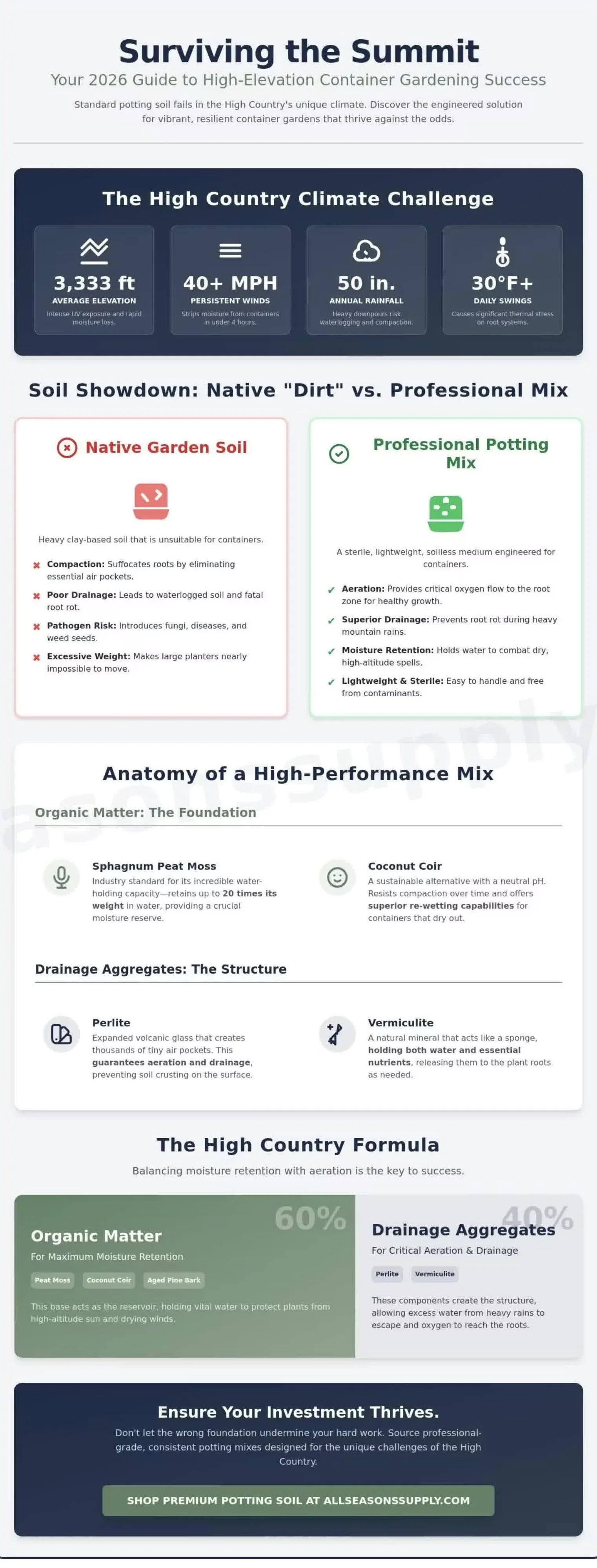 Understand why the High Country's unique elevation requires a specialized soilless medium to prevent container garden failure.