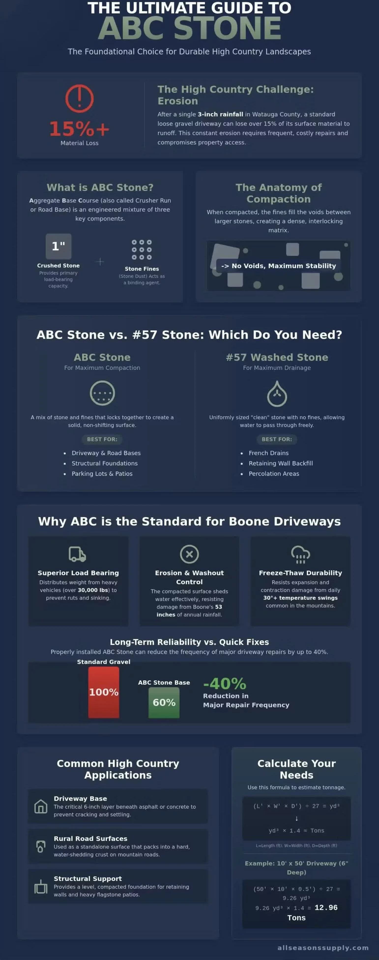 After a single 3-inch rainfall in Watauga County, a standard gravel driveway can lose over 15% of its surface material to erosion and runoff. Maintaining a functional property in the High Country requires more than just a seasonal top-off of loose gravel. You likely understand that steep grades and heavy mountain precipitation demand a material that locks into place rather than shifting under pressure. This is where ABC stone becomes an essential solution for property management and construction projects that need to last.